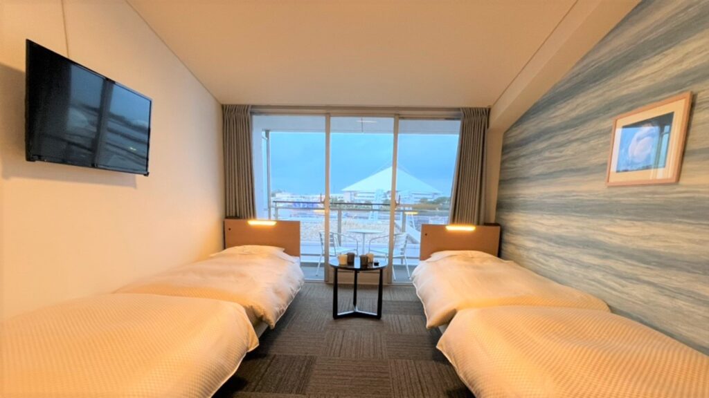 客室はシーパラダイス側とオーシャンビュー側があり、閉園後の水族館や海、島の景色を楽しむことができます。